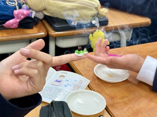 出前道場レポート 世田谷区立北沢中学校 3月10日(火)に、世田谷区立北沢中学校で『おしごとなりきり出前道場』を実施しました。当日は、中学1年生の61人の生徒が、「アロマセラピスト」「建築家」「アナウンサー」「弁護士」「鍼灸師」の体験をしました。 鍼灸師 2026年3月10日
