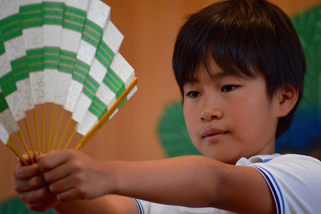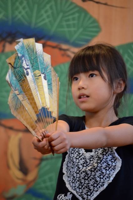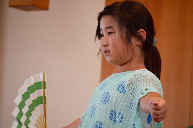 扇子を持つのがはじめてでとても大変でした。一人で舞うときは緊張しました。