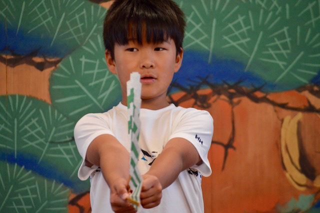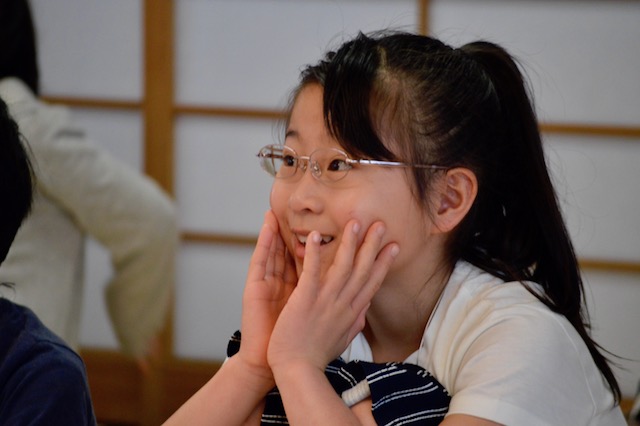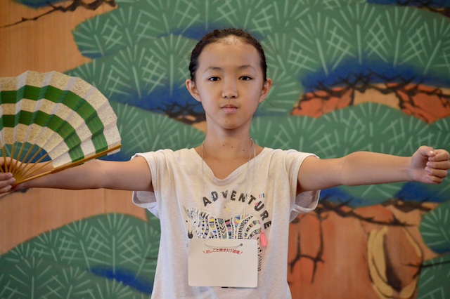 私は能楽師をはじめてやったので、こんなことをやるんだーて思いました。楽しかったです。夏休みはじまったときからこんなうれしいことがあってうれしいです。