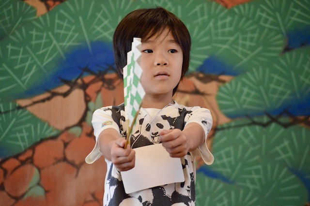 最初はお手本どおりにできるかどうか不安だったけど、練習したらできるようになってうれしかった。はんにゃのお面が怖かった。いろいろなことを教えてもらうことができた。