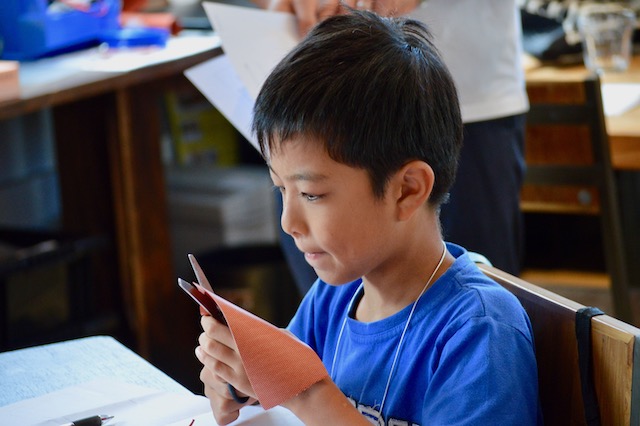今日ははじめて見た道具などもあり、楽しかったです。難しかったことは、穴をあけるとこです。大変だったり、難しいこともあったけど、楽しいラバーペンケースづくりになりました。