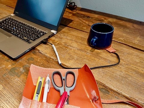 これには、USBから電源を取ることでほんのり温まる、同じ素材でできたコースターも付いてきます。