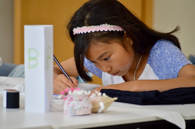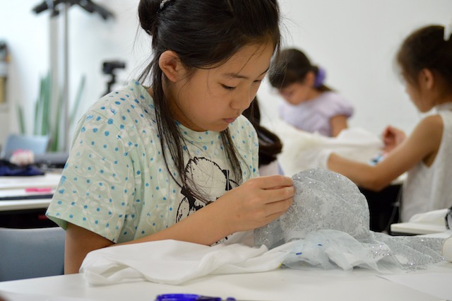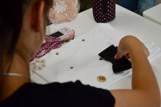 形ができあがったら、自分でイメージしたデザイン画をもとに、ワンピースをかわいくデコレーション。