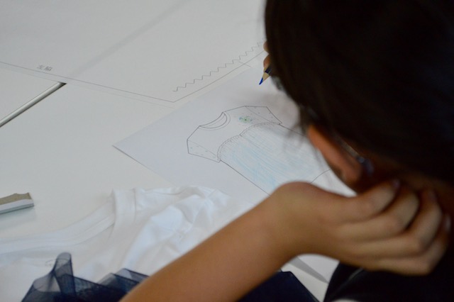 自分でデザインした洋服を作るのはとても楽しかったです。肩の生地をつけるのがとても難しかったです。家でもまたやってみたいです。