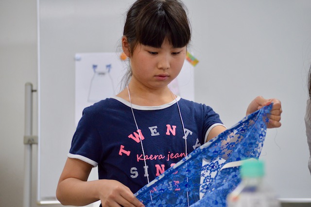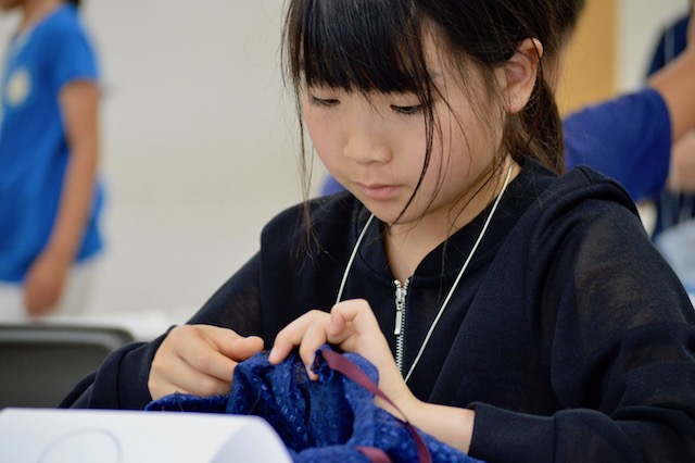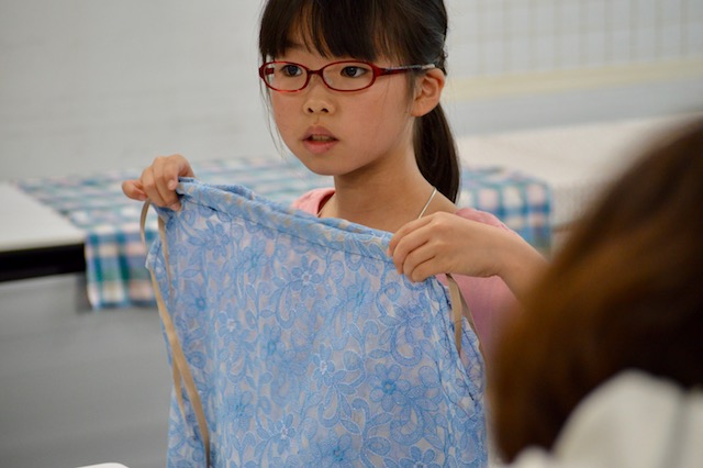 はじめて自分で洋服を作ったりデザインしたりしたので、大変さがよくわかりました。手ぬいだったのですごく大変でした。でも、できあがったものを見るとやって良かったなぁーと思いました。講師のみなさん、手伝ってくださりありがとうございました。