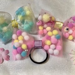 リボンの形をしたかわいいヘアゴムを作ったり。