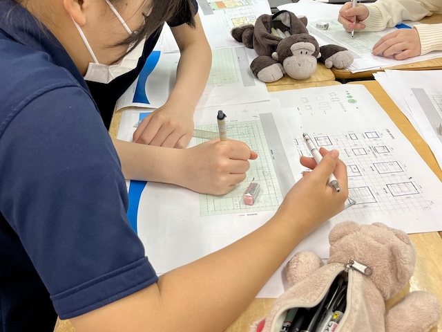 いつもゲームの中でしか建築をしたことがないから、今日は平面図に自分でアレンジできたのでうれしかったです。
