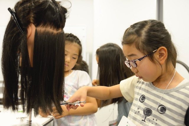 • 美容師が使っているハサミを使って、実際に付け毛のカットを体験してみよう!