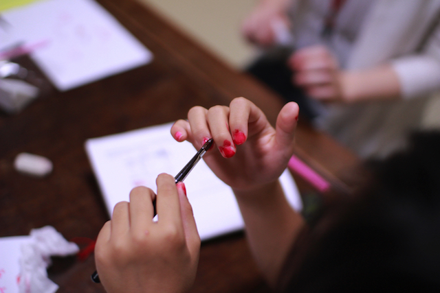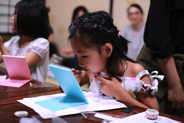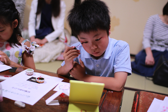 ※1 口紅以外にも、男の子には目弾き(歌舞伎の隈取のようなこと)をしていただくことができます。また、体の一部分につけて、発色の違いを実感していただくこともできます。
