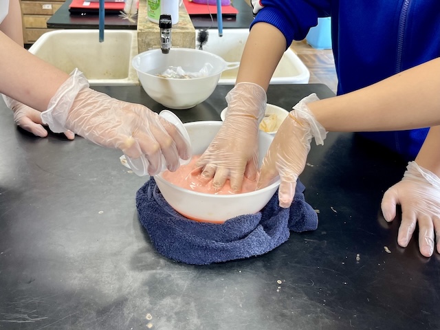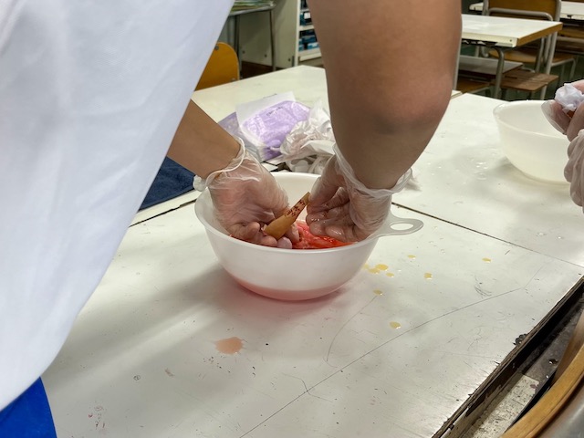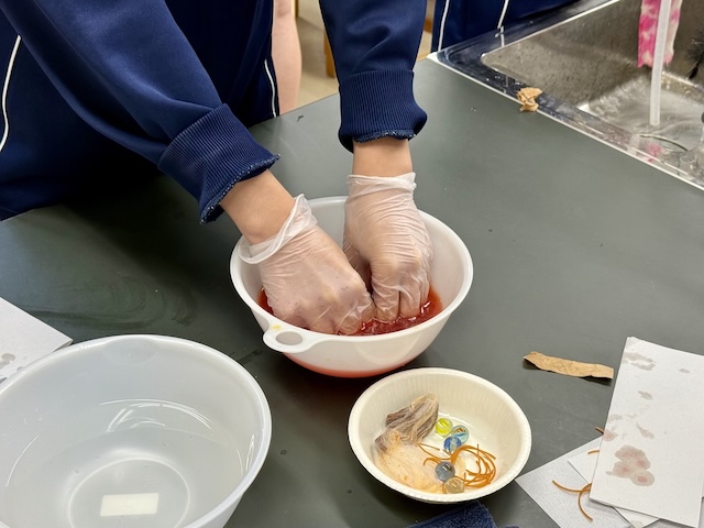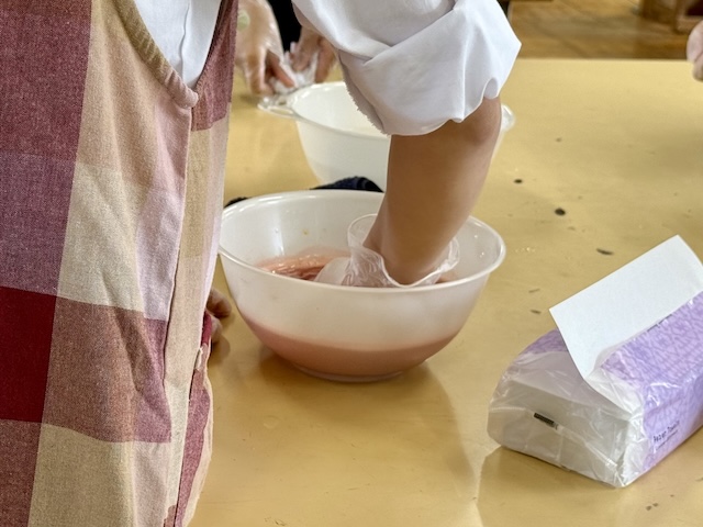 紅というものがどのように作られているのか、どうやって赤だけを取り出すのかの実験を見てよく知れました。自分で体験したことによって昔の人たちの気持ちになれました。とっても楽しかったです。