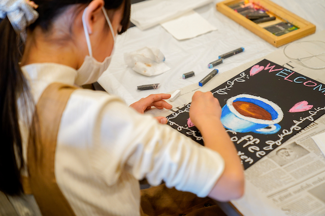 コーヒーを作って湯気を作ったところをお母さんに見せたいです。次はコーヒー以外にも、チョークでアートをしてみたいです。