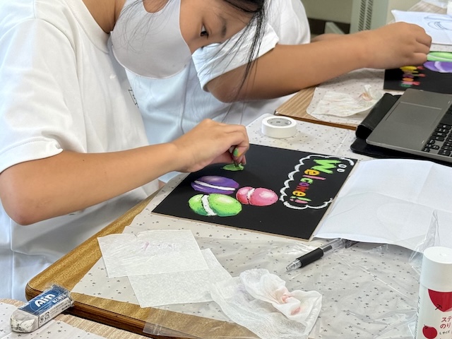やったこともないおしごとができてよかったです。材料を集めて、家で好きな絵を描いて、習ったように(白いチョークで)絵を描いてみます。楽しかったです。