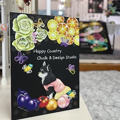 カラー関係の資格を取ろうと検索している時に偶然見つけたチョークアート。「楽しそう!」と思い受講し、2010年に講師資格を取得。2015年に大阪市内から和泉市に移転し、南大阪や泉州地域を中心に手描きの温かさを知ってもらいたいと思い活動している。2024年には、和泉市に小さなギャラリーと雑貨店を併設するアトリエをオープン。ウエルカムボード、ペットやインテリアボードなどの制作とチョークアート教室を開講している。出張講座やワークショップ、デパートでの作品販売なども行う。チョークアートをもっといろいろな物に活かせるのではと、役に立てることを探しながら活動中。