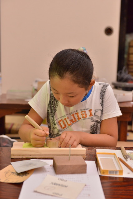 彫刻刀で木を彫るのが難しかったです。紙やすりで木をこするのが楽しかったです。いろいろな彫刻刀で手を切らないようにするのが、びくびくして少し怖かったです。