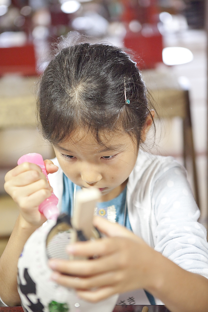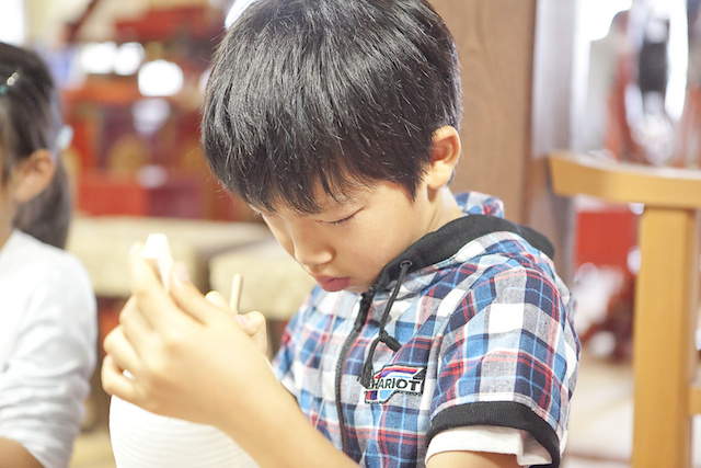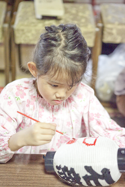 提灯を作るのは初めてで、文字の中の色を塗るとき少しはみ出てしまって大変でした。
