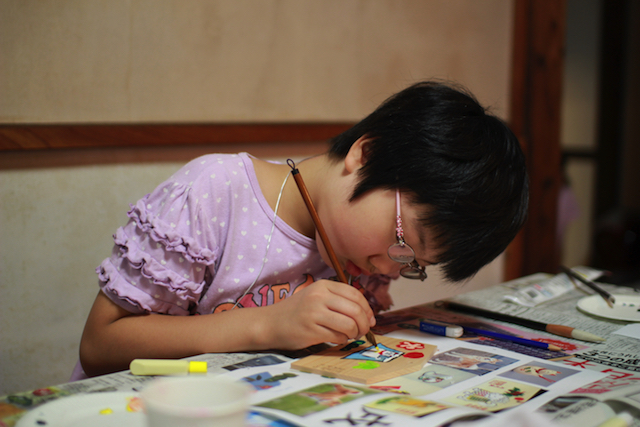 上手にできてよかった。細かい作業でたいへんだなと思った。将来は絵馬師になりたいという夢ができた!ありがとうございました!