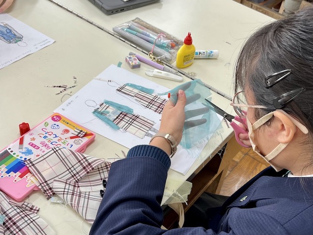 自分で思っているデザインを紙にするのが本当に難しかったです。好きな生地を選んで、でも厚さなども考えて、デザイナーさんは本当にすごいなと思いました。大変で難しかったけど、すごく楽しかったです。