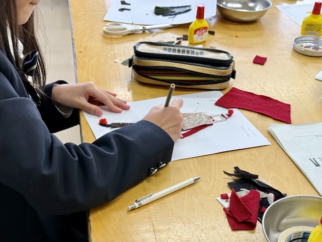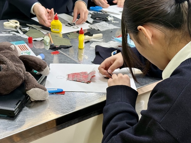 いろいろな布やビーズ、リボン…などを使って、かわいいお洋服を作ることができてうれしかった。でも、お洋服のデザインを考えることは、とても大変だということがわかった。