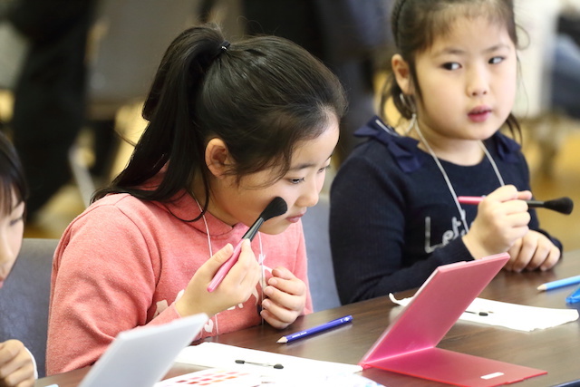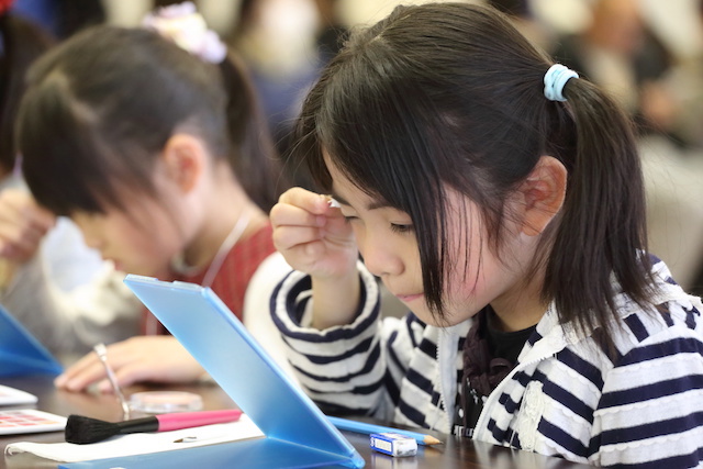 お化粧をするときにいろんなブラシがあってびっくりしました。チークのぬる場所も分かって楽しかったです。大人になったりしたときに活かせることがたくさんあったので、いい経験になりました。私もヘアメイクをするおしごとにつきたいです。