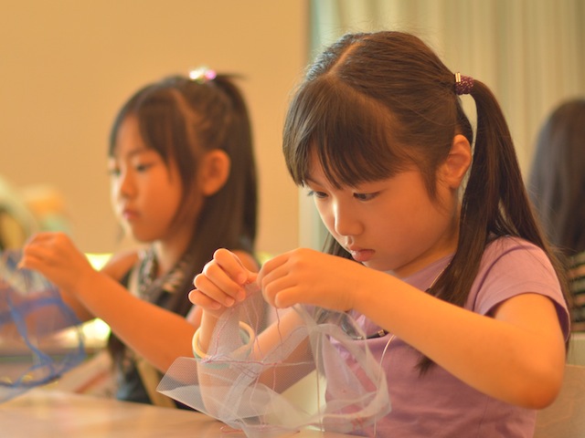 • 毛糸針を使って、キラキラチュールのベレー帽を作ろう!