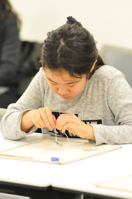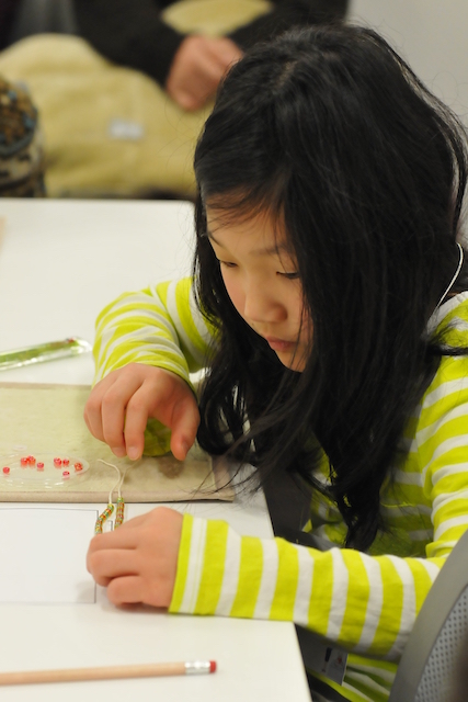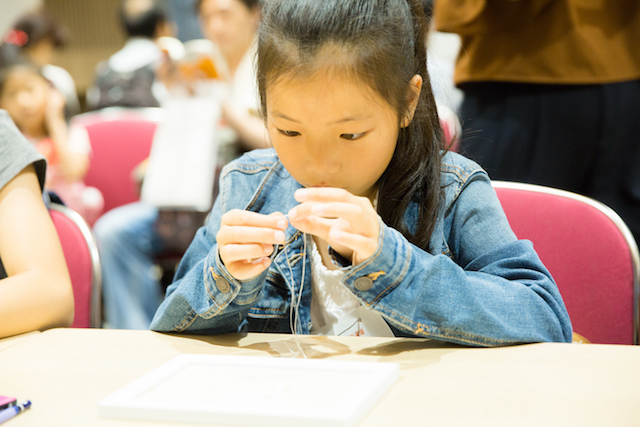 ビーズや宝石は、すごくきれいでした。縫うのは少し大変だったけど、はじめてやってすごく楽しかったです。どんなおしごとか知ることができてよかったです。