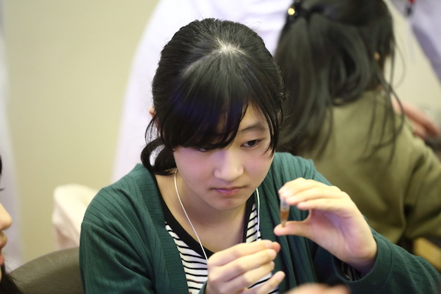 身近にある漢方薬はどのように作られているか、そして、どうやって調べているのか実際にやり、「たいへんだな…」と感じました。でも、科学に興味をもつことができました。将来、科学に関わる仕事につきたいと思います。