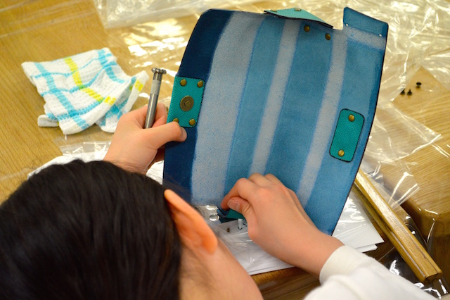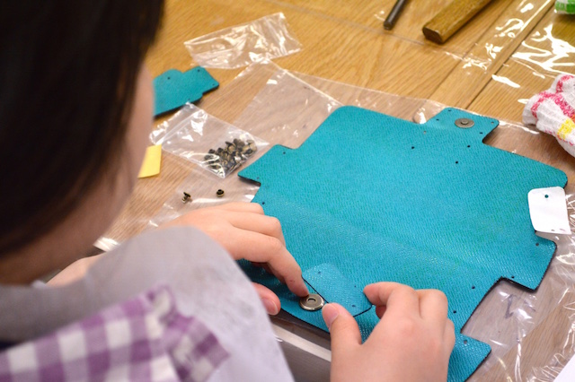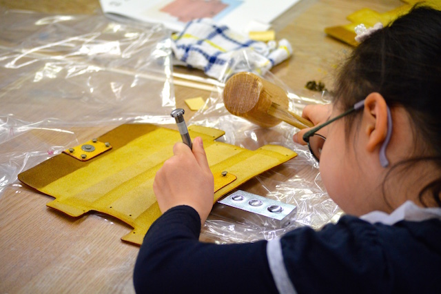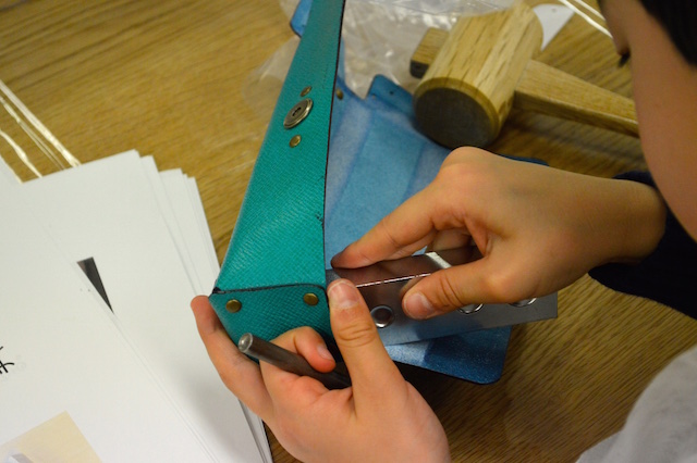 革でペンケースを作って、立体にするときカシメを打つのが難しかったけれど、この経験を活かしてものづくりをしていきたいです。
