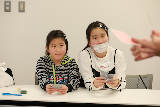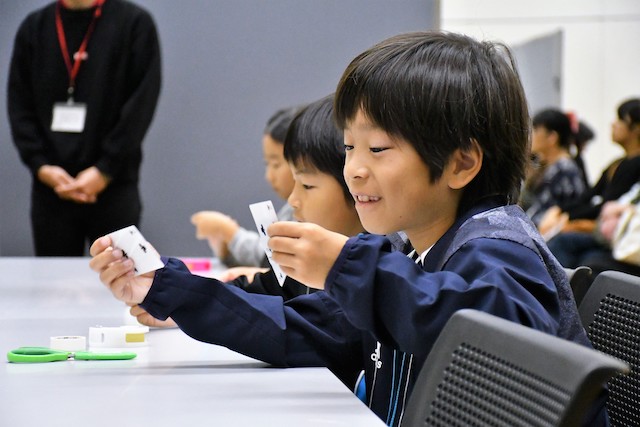 とてもおもしろかったです!見てると難しそうなのに、実際に体験してみると簡単でした。人前で発表するのは緊張しましたが、教えてもらい上手にできました。次はもう少しレベルを上げて、人前で堂々とできるようがんばりたいです。