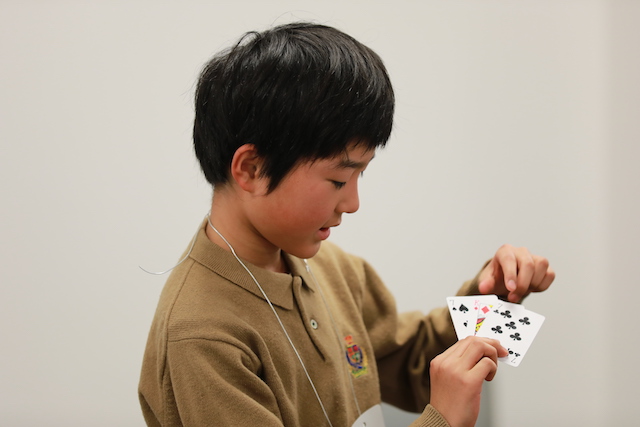 タネをばらさずに手品をするのは難しかったけれど、おしゃべりをしながら同時に手品をするのもかなり難しかった。でもうまくできたときは、うれしくて「ハーッ」と思いました。