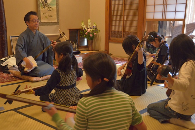 - 三味線の持ち方や構えを学んで、実際に弾いてみよう!