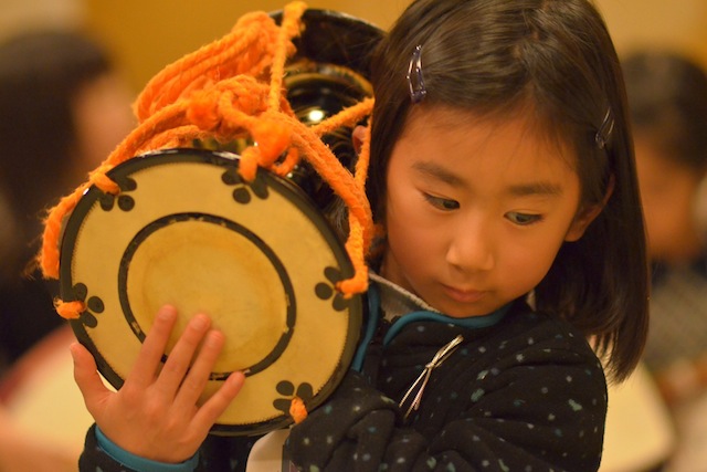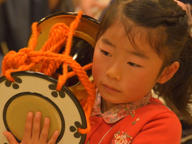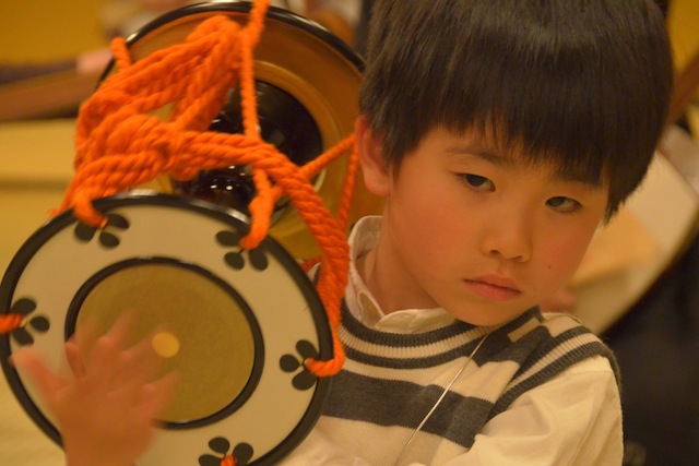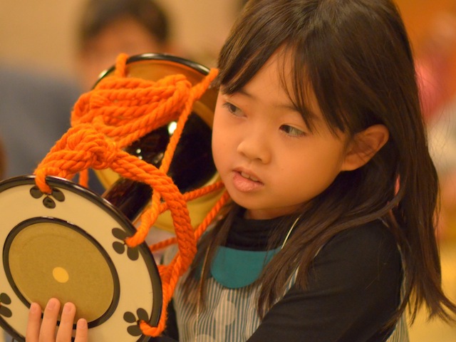 - 小鼓(こつづみ)、大鼓(おおつづみ)、太鼓(たいこ)の持ち方や構えを学んで、実際に打ってみよう!