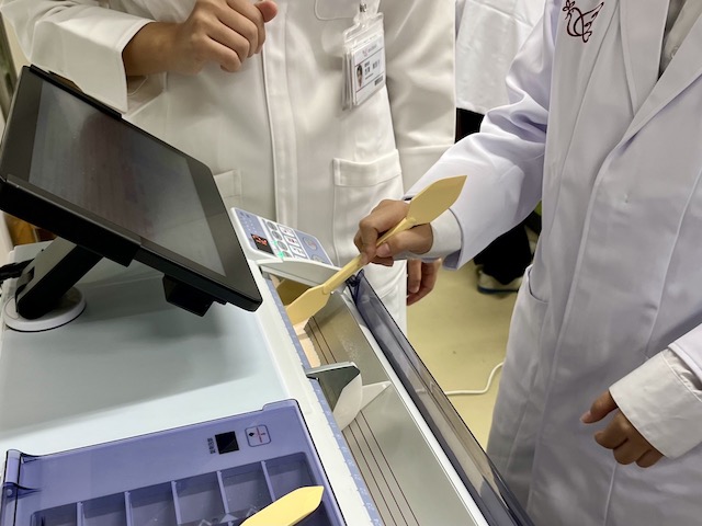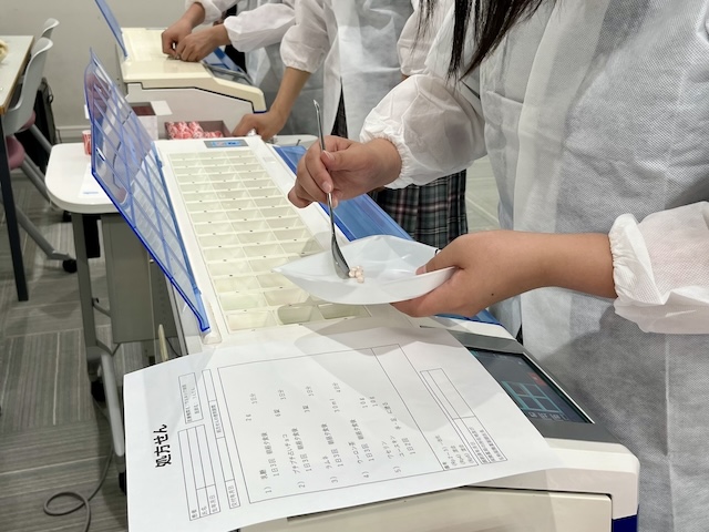 薬を作るのはとても大変で、思ったよりもすごく難しかったです。処方せん・薬を渡すときも、大きな声で心づかいも気をつけたいです。