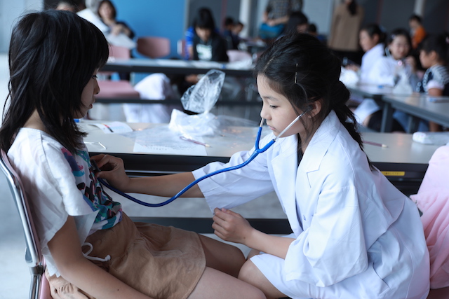 普段は自分が先生に手当てをしてもらっていたので、今回、先生の仕事について知ることができてよかったです。また、聴診器の使い方などもくわしく知ることもできてよかったです。