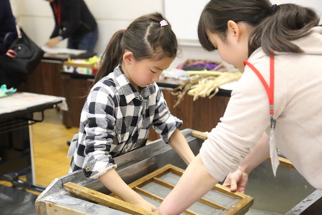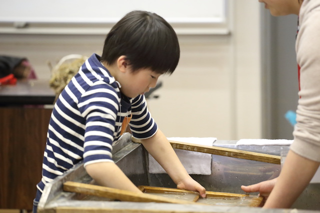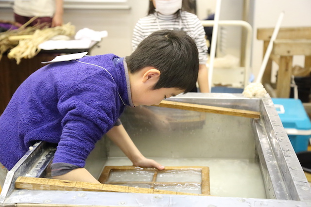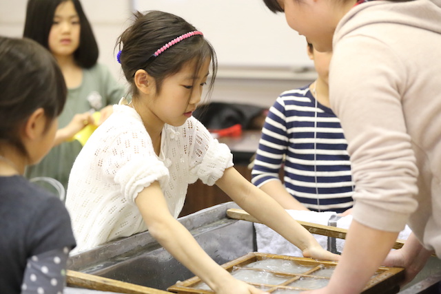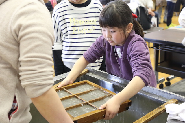 紙から作るなんてたいへんだと思いました。普通の紙は洋紙というのも勉強になりました。私は前より和紙のことがわかった気がします。和紙が作れてとても楽しかったです。いい体験ができました。