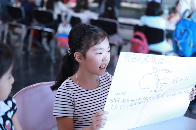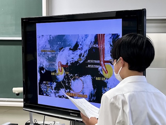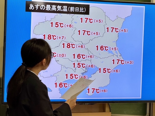 天気図を見て、自分で天気を予想して、みんなに伝えることができたのが楽しかったです。天気予報士になるのが夢なので、よい経験ができました。ありがとうございました。