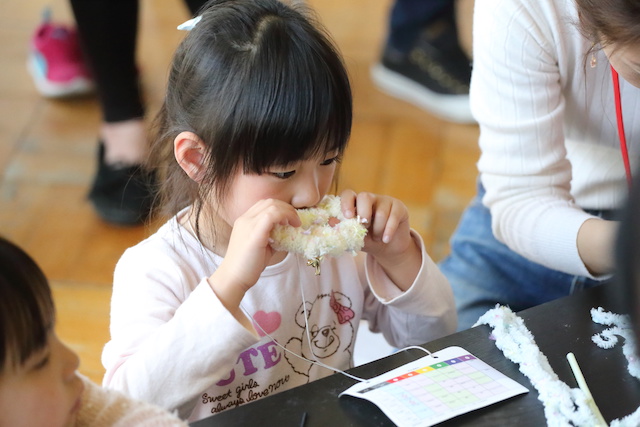 ハワイアンリトミック講師として、レッスンに季節の造形を取り入れている。その中で、こどもたちが安全に、そして楽しく作業できるような製作を考案。ウクレレの音色を聴きながら自由に造形し、表現力や創造力、集中力なども養っていけるような活動を行なっている。