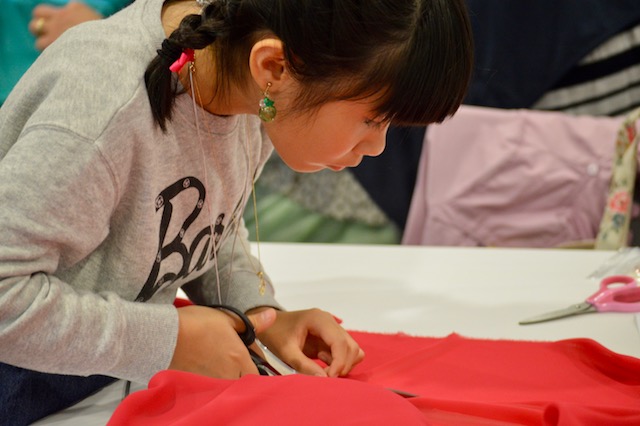 なんとなく女の子があこがれているファッションデザイナーの仕事を0からやらせてもらえて、最終ステージであるショーまで体験させてもらえて、ありがとうございました。こどもも教える私も不器用なので、学校で教わるまで針仕事はいいやって放っておいたのですが、スタッフさんの指導のもとで、アイロン、針、ミシンかけとフルコースができて本当に良かったです。布を断つにしても家ではなかなかさせてやれないので貴重な体験でした。